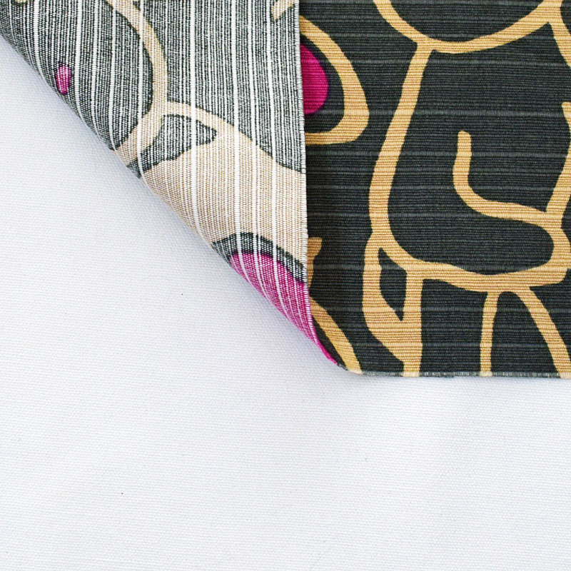 変わり織りの素材と抽象的な絵柄が相まって独特な世界感を持っています
