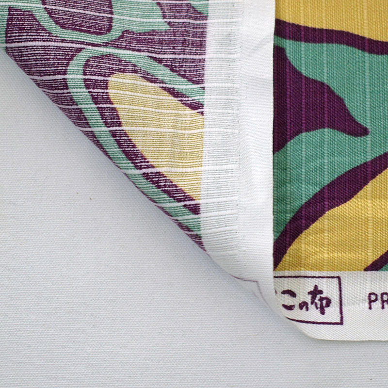 変わり織りの素材と抽象的な絵柄が相まって独特な世界感を持っています