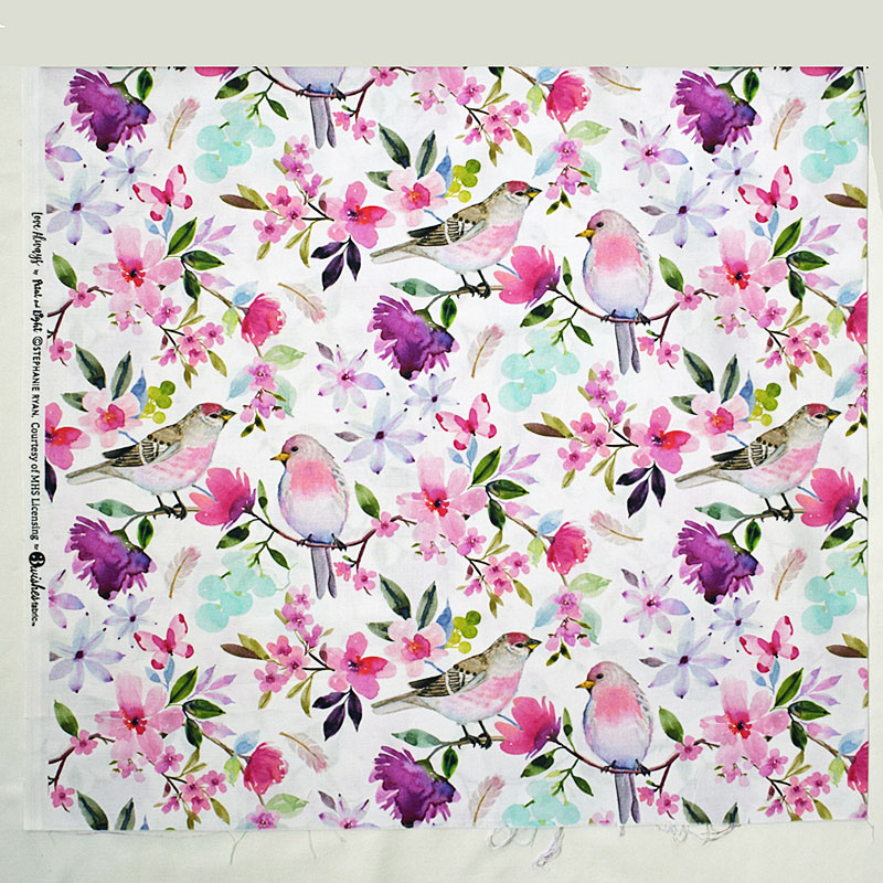 LOVE ALWAYS BIRD FLORAL Love Always by Petal and Light ©STEPHANIE RYAN. Courtesy of MHS Licensing for 3wishesfabrics? RN-H8678 B824-WHITE