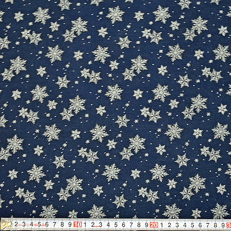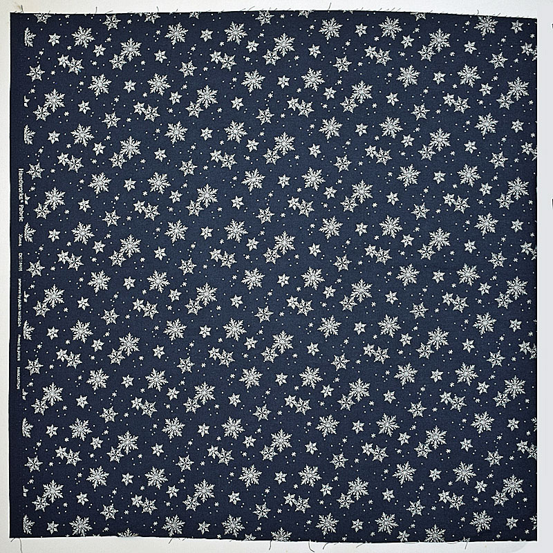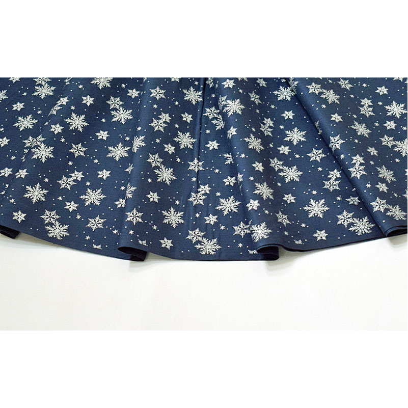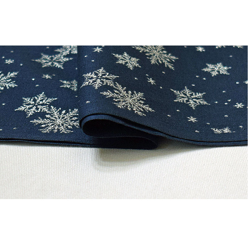 濃紺地にシルバーラメで雪の結晶を描いています。