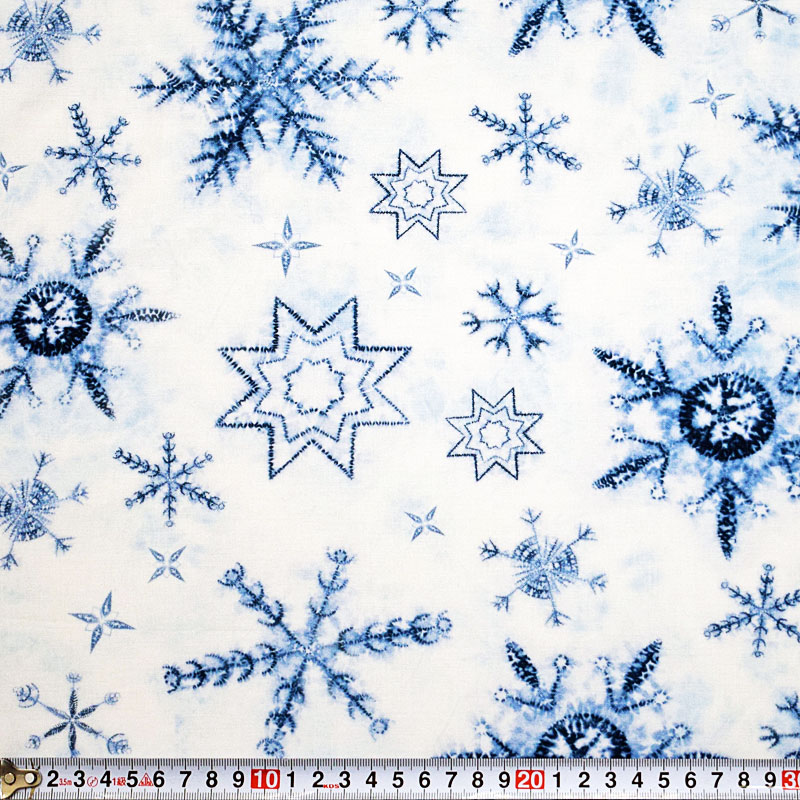雪の結晶、絞り染め風 インディゴ・ブルー/ホワイト