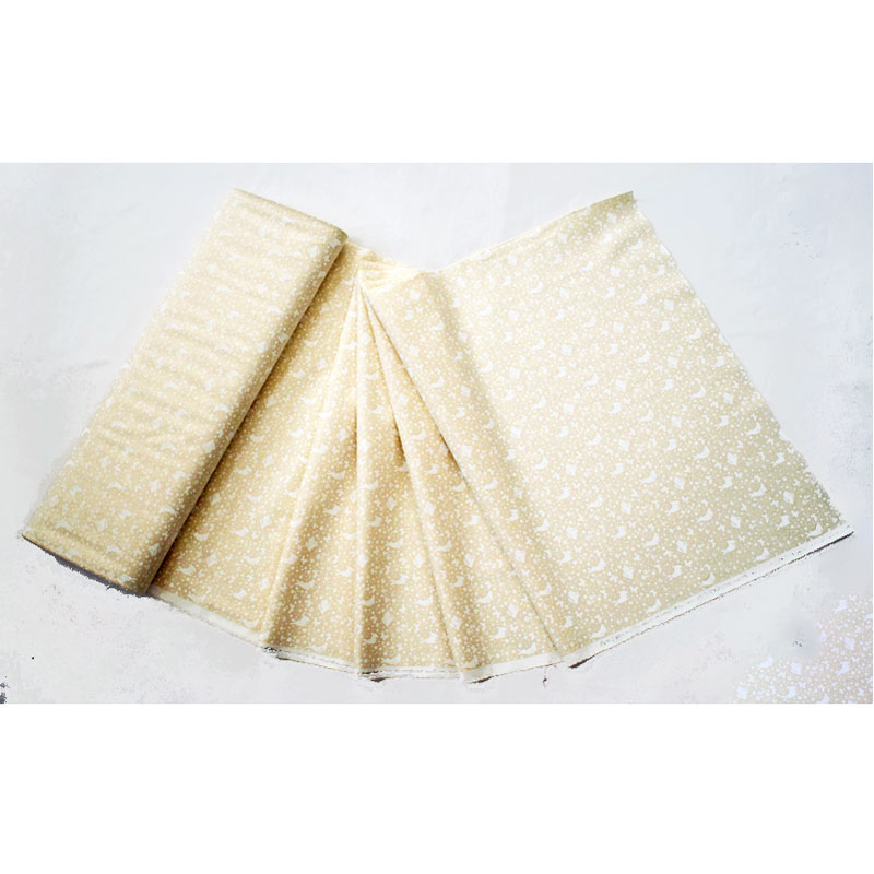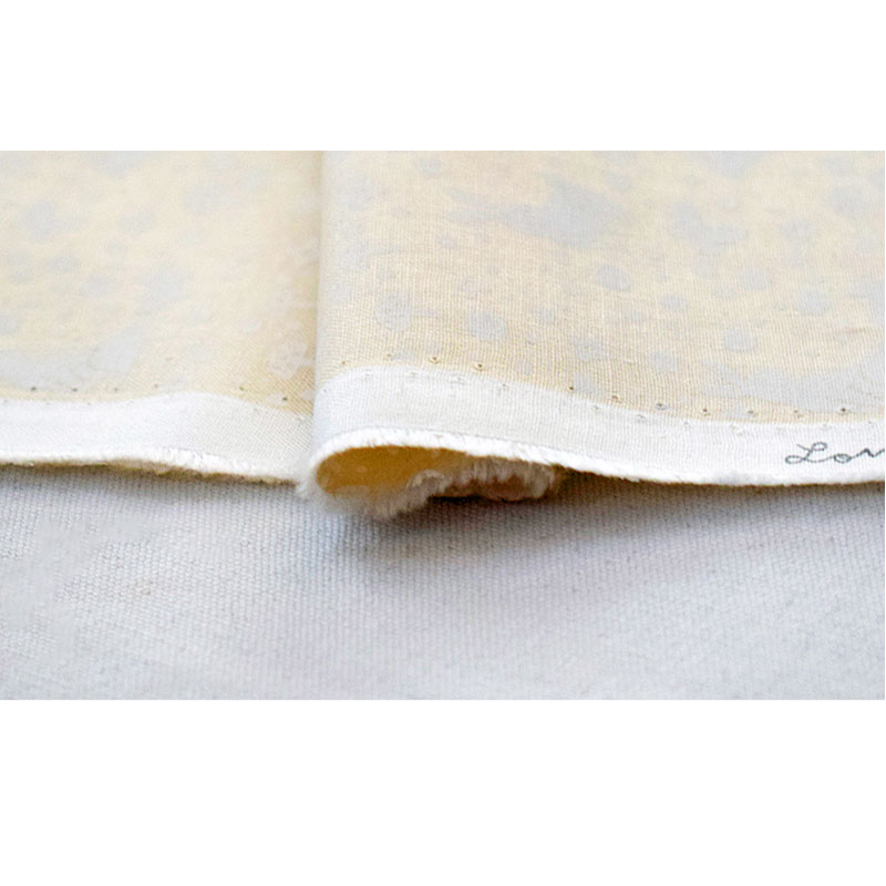 クリーム地に白でウサギ、蝶々、キノコ、お花、ドットを描いたデザインは、ナチュラルで繊細な雰囲気を持っていて、どんな作品にも合わせやすい万能ファブリックです。