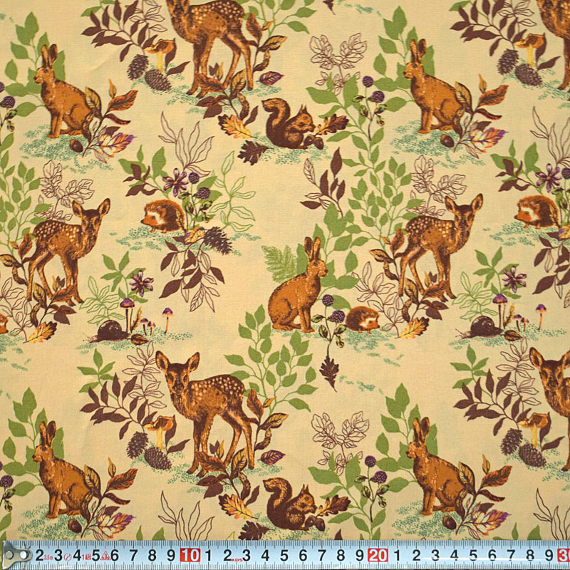 ウサギ、シカ、リス、ハリネズミ、カタツムリ ベージュ