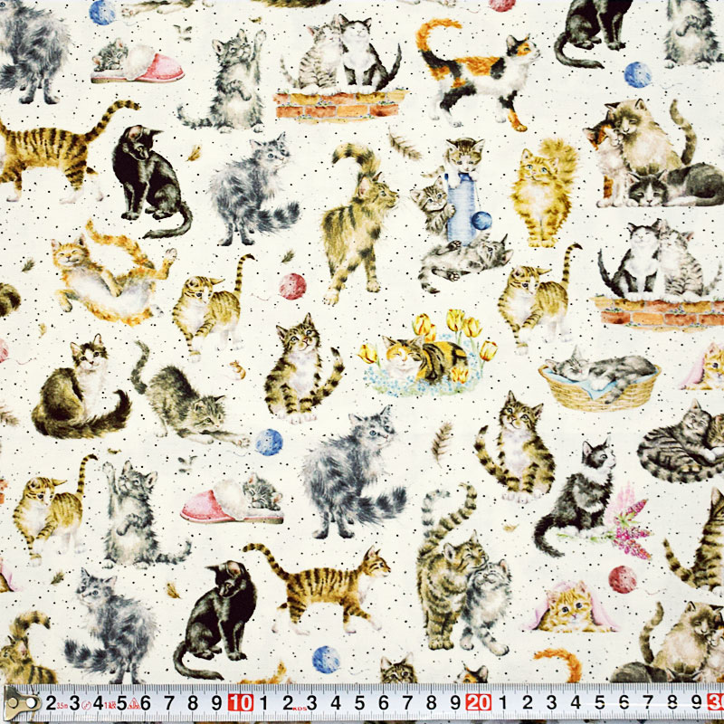 可愛いく遊ぶネコたちが主役の生地をご紹介します。