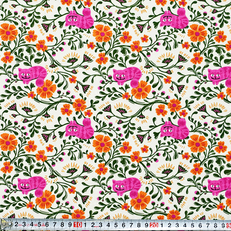 ショッキング・ピンクの"アリスのチェシャ猫(cheshire)"と植物が描かれた人気柄