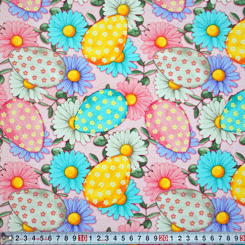 春らしいイースターエッグ柄が可愛らしい、イースター柄のコットン生地です。