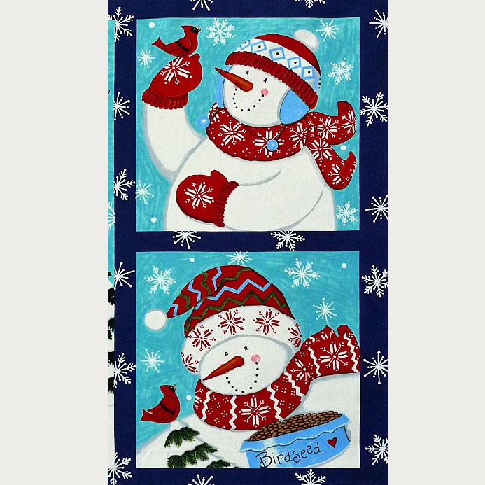 スノーマンとカージナルとブルージェイがモチーフのクリスマスブロックパネル。