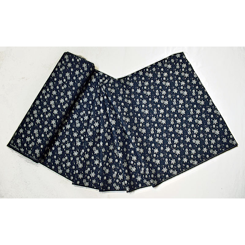 濃紺地にシルバーラメで雪の結晶を描いています。