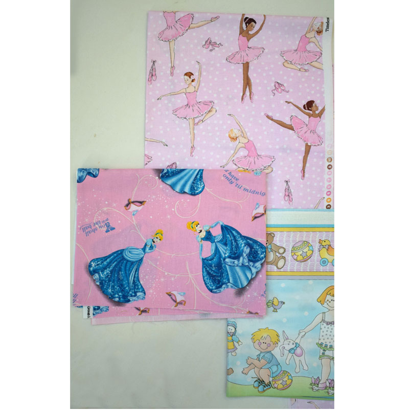 110cm×90cm~55cm×50cmのバレリーナ柄と110cm×35cmのシンデレラと55cm×50cmの子供柄のボーダー