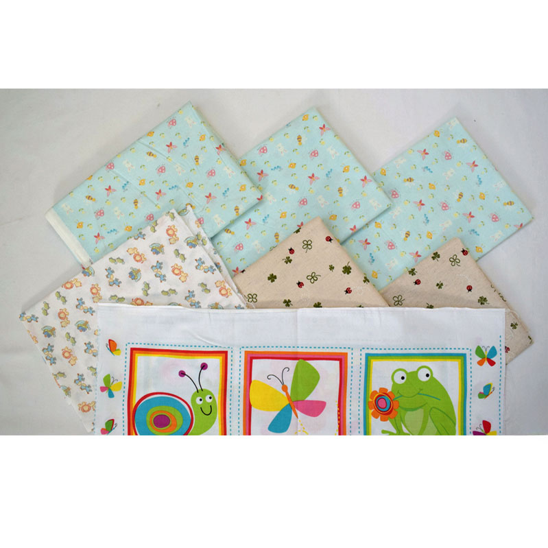 お花・昆虫・カエル・カタツムリのパネル柄と綿/麻のクローバー・テントウムシと蝶々やミツバチ