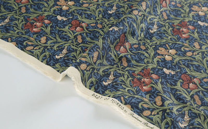 ウィリアム・モリスと娘、メアリー"メイ"モリスの共同作業による、アイリスと鳥がモチーフの柄。