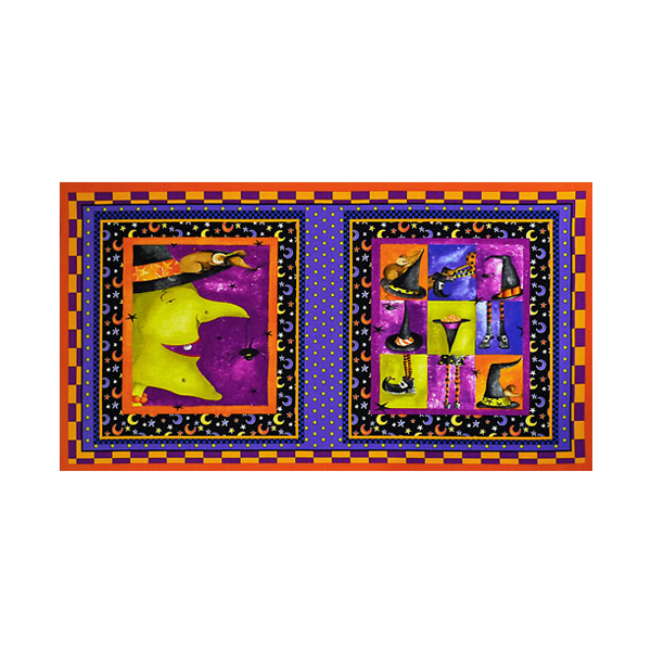 お化け屋敷、死神、魔女 ハロウィーン/マルチパネル 余白が少し小さいハギレ