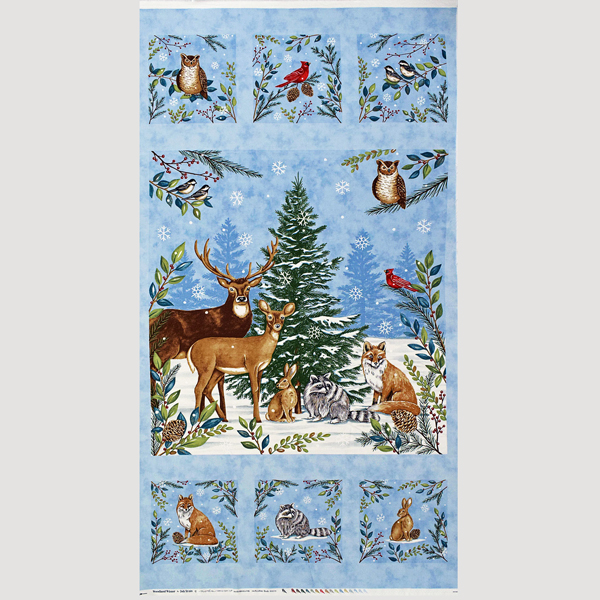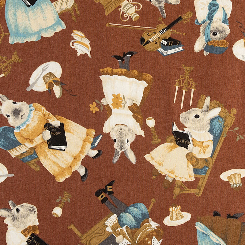 ウサギ、リス、フクロウ、蝶々、テントウ虫 トス/ベージュ 110*65