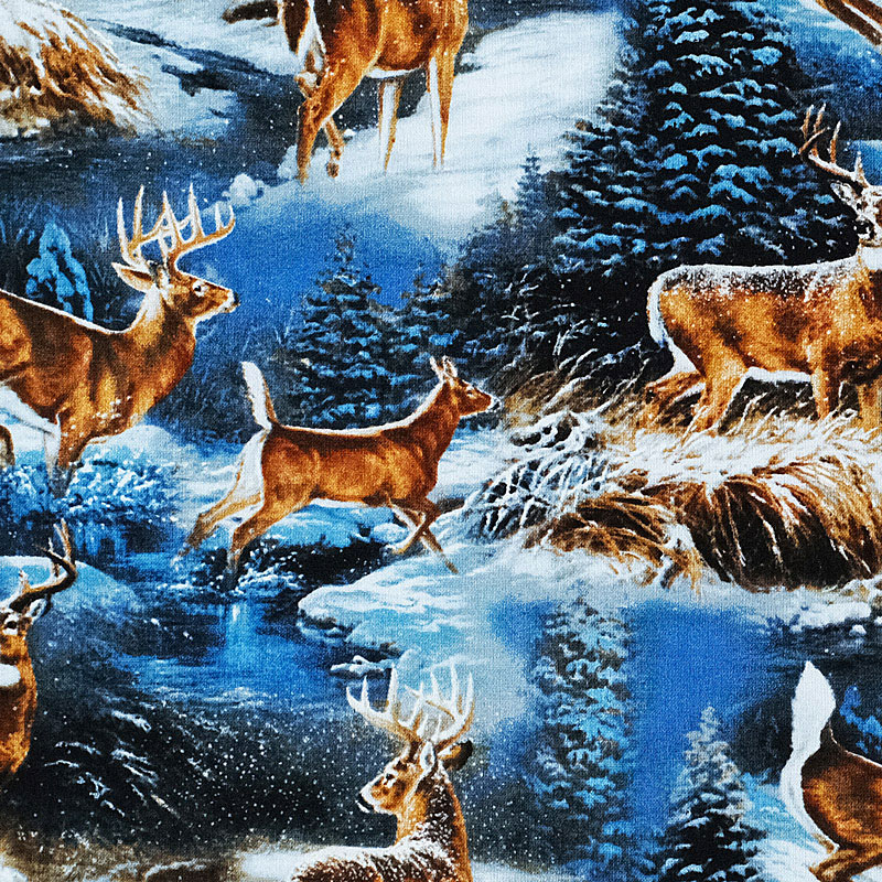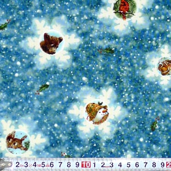 クマ、シカと雪の結晶 トス/ブルー 110*100