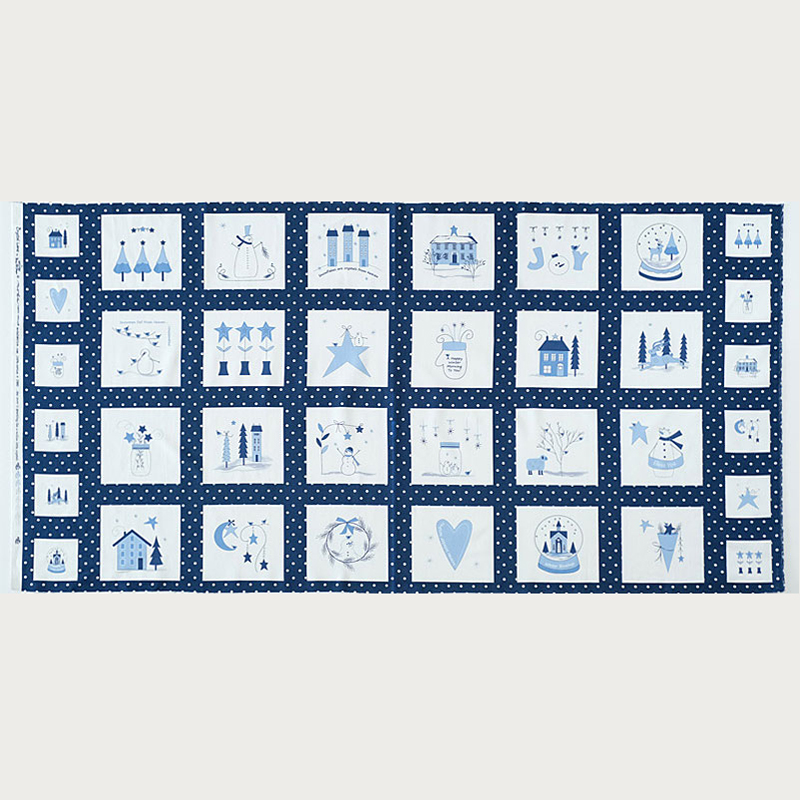 雪の結晶、トナカイ、鳩 ブロック・パネル インディゴ 60.5*110