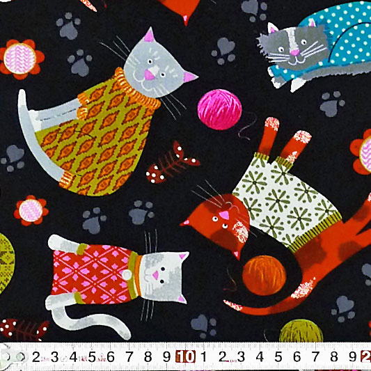 赤やグリーンやブルーのセーターを着たネコ オールオーバー/ブラック